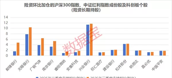 从持仓变动情况看,2025年三季度期间,共有13只个股获险资环比加仓,涵盖邮储银行、无锡银行、南京银行等银行股;科创板中,广钢气体、睿创微纳、安集科技亦获得增持。