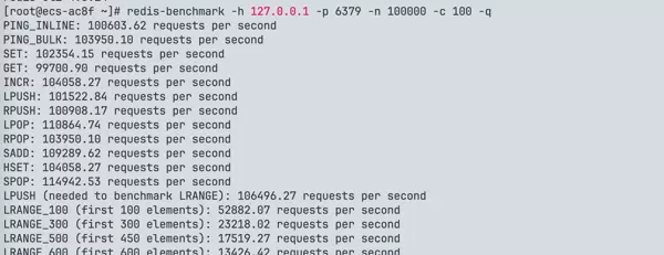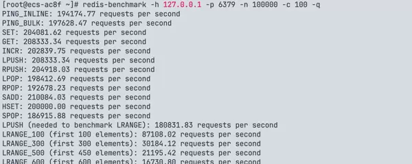 redis-benchmark -h 127.0.0.1 -p 6379 -c 100 -n 100000