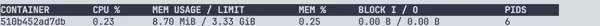 内存占用:8.70 MiB / 3.33 GiB(占比 0.25%)