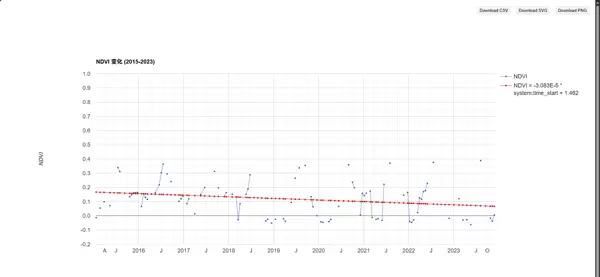 随后,系统将利用该点位信息从影像集合(ImageCollection)中提取对应的 NDVI 时间序列数据,并绘制趋势图表。