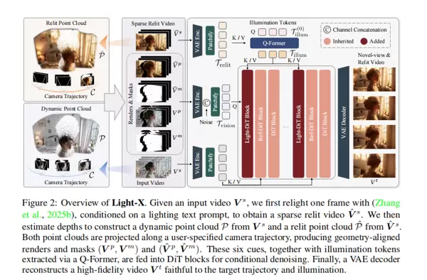 Light-X的核心思想是将复杂的视频生成问题分解为两个独立但互补的子任务——几何建模与光照建模。具体而言,模型通过构建两组动态点云来分别编码场景的空间结构与光照响应特性,从而实现精细化的控制能力。