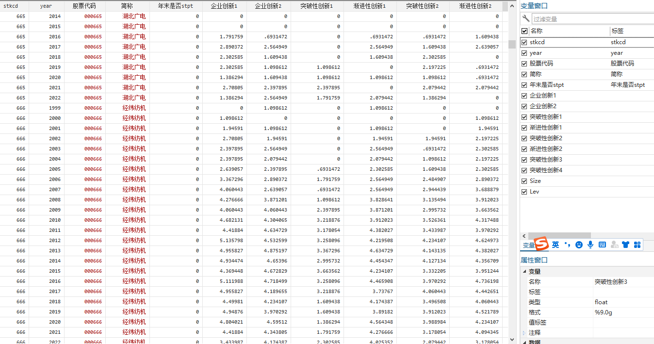 1999 - 2022年A股公司创新变量数据(基于专利数据计算)创新变量涵盖突破性创新、渐进性创新、策略性创新,具体如下: