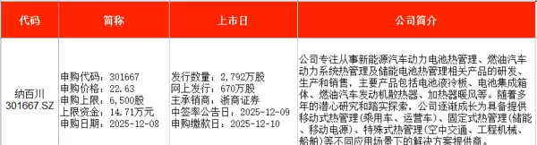 - 纳百川(301667)与优讯股份(688807)将于周一(12月8日)开启申购;