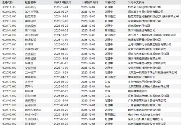 首次提交申请的公司共6家,分别为:杭州高光制药股份有限公司、深圳曦华科技股份有限公司、倍通数智开曼控股有限公司、深圳传音控股股份有限公司、安克创新科技股份有限公司和广东鼎泰高科技术股份有限公司。