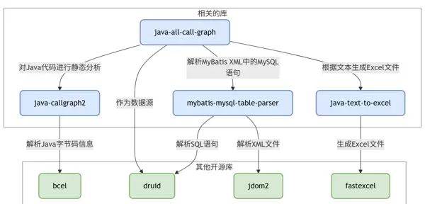 - java-all-call-graph 依赖 mybatis-mysql-table-parser,用于解析 MyBatis XML 文件中的 MySQL SQL 语句;