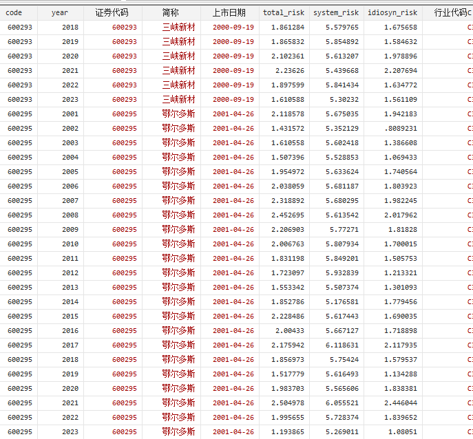 2023-2000年中国A股系统风险与特质风险承担数据及Stata代码