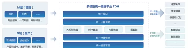 这种多模型一体化设计从根本上消除了系统间的隔离,使得来自管理域(M域)和生产域(O域)的数据得以整合分析。无论是ERP、CRM等业务系统的结构化记录,还是物联网设备产生的实时流数据,均可在同一平台上进行关联建模,为AI大模型提供全面、多维度的训练与推理输入。