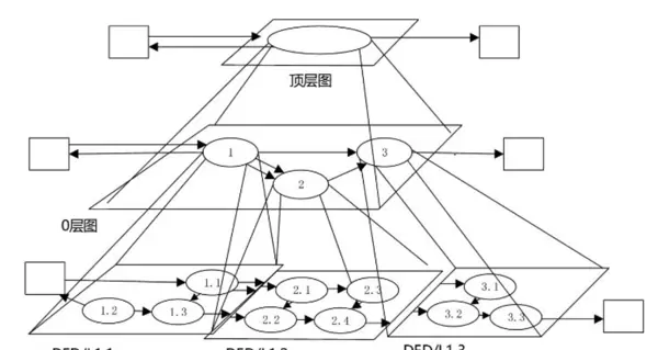 父子图的关系具有相对性:顶层图为零层图的父图;若零层图中的某个加工进一步分解,则形成新的子图,原图为父图。