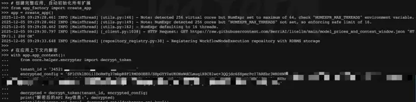 由于Dify的解密逻辑强依赖于完整的运行环境,不能直接调用函数处理,必须在API容器内启动Python交互环境:
