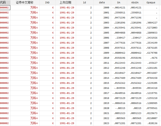 修正的Jones模型:应计盈余管理分析(2000-2023)附do代码,DA信息透明度提升