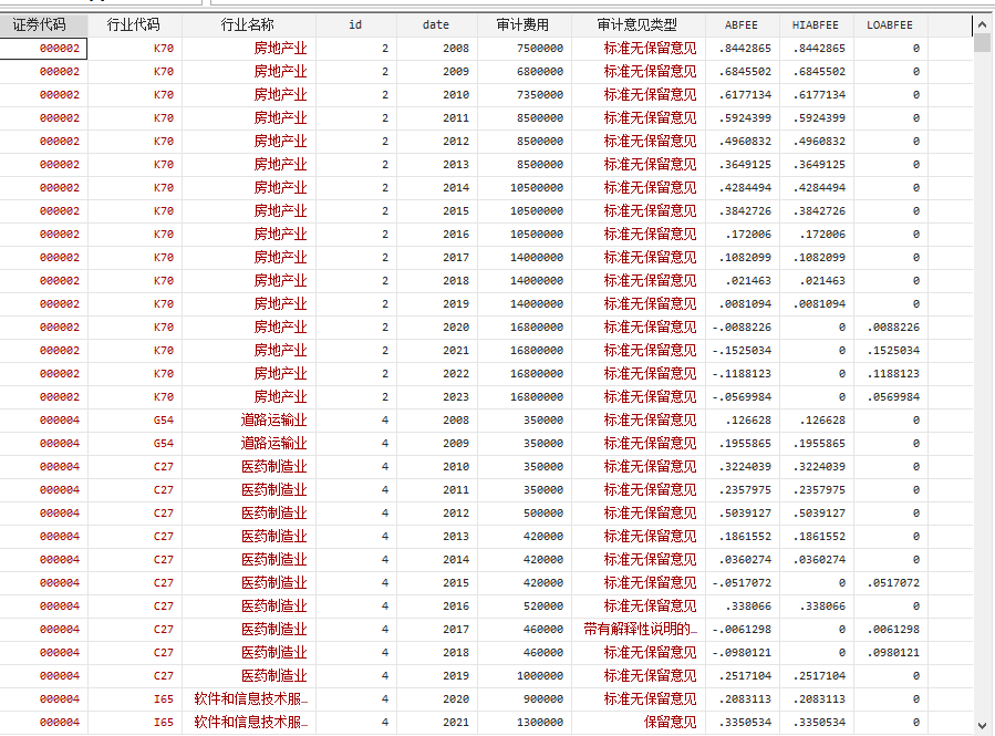 [经管数据集] 沪深京上市公司异常审计费用数据及处理文件(2008-2023) |