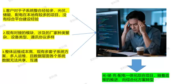 当前用户在当地已实施多个光伏、储能及配电相关项目,具备一定能源基础设施基础,但缺乏统一的综合管理平台来整合各子系统资源。现有模块之间独立运行,难以形成协同效应。