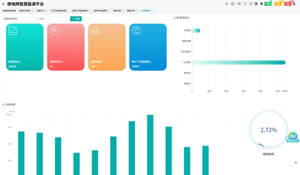 同时,系统提供用能与碳排放预算管理功能,针对工业园区或企业设定周期性的能源消费与碳排放指标,结合历史数据进行预测分析,实现全过程动态监控与灵活调整,助力用户科学制定减排路径。