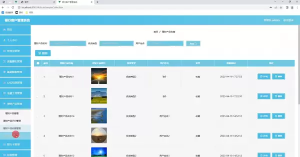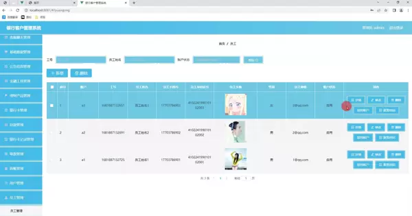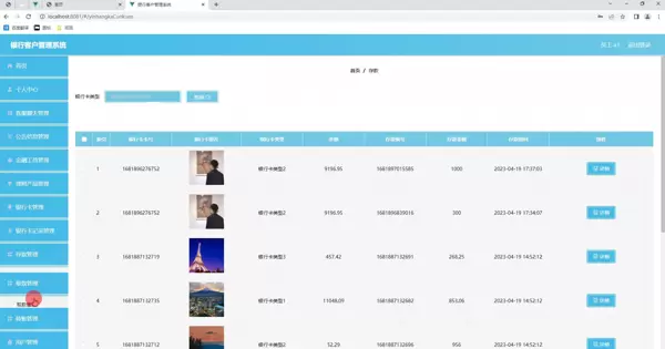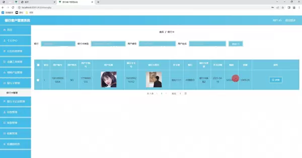 本系统基于B/S架构(浏览器/服务器模式),采用Java语言进行开发,后端数据库选用MySQL。系统涵盖多个功能模块,主要包括:客户聊天管理、字典表维护、公告信息发布、金融工具管理及其收藏功能、银行卡关联管理、借款业务处理、理财产品管理及收藏、理财账户绑定、存款与取款操作、转账服务、用户权限控制、员工信息管理等。