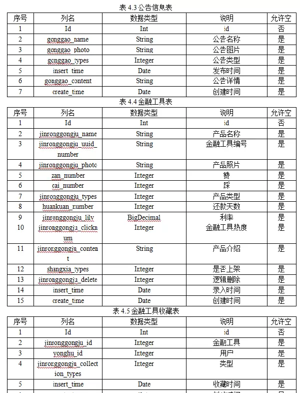 在完成概念模型设计之后,需依据前期绘制的E-R图进行物理表结构的实现工作,即在数据库中创建具体的表对象,并对其进行命名与字段定义。以下通过表格形式展示最终的表结构设计方案。