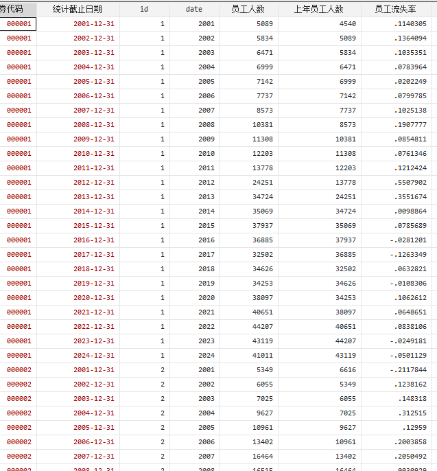 A股公司员工流失率相关数据(2000 - 2024年)及stata代码(2025年新数据)参考文献:创业板公司股权激励的影响因素研究_魏春燕