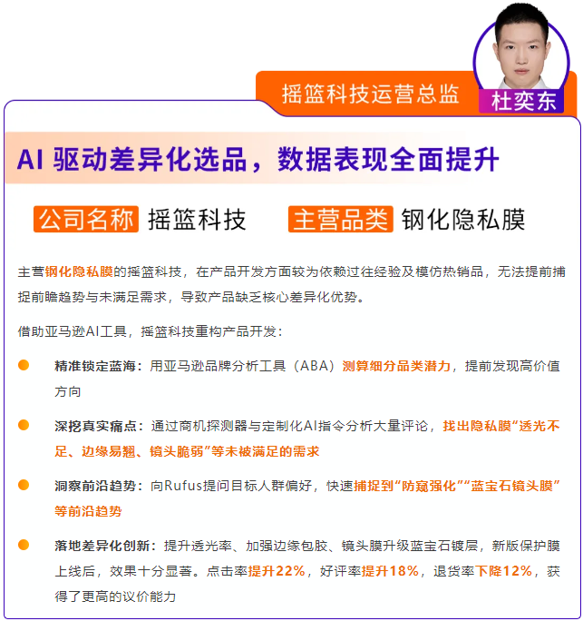 (1)通过Rufus ,直接提问“消费者最喜欢该类产品的哪些卖点”,AI帮你精准提炼竞品吸金点,产品直击买家心坎