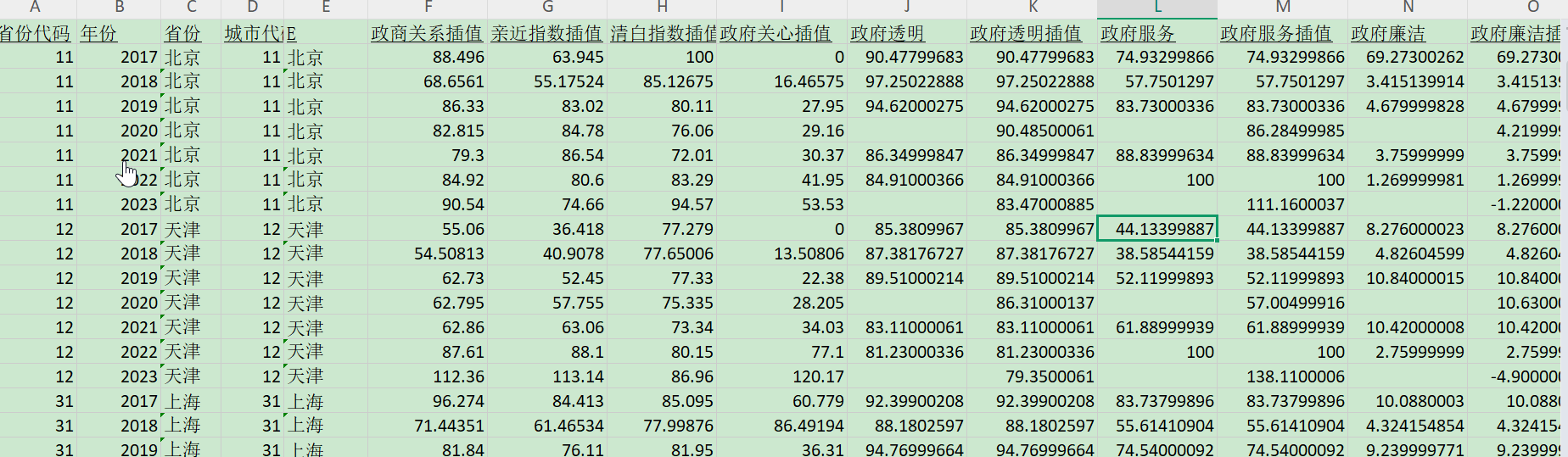 中国城市政商关系健康指数(2017 - 2023年)EXCEL面板数据
