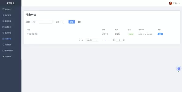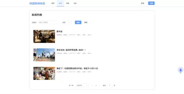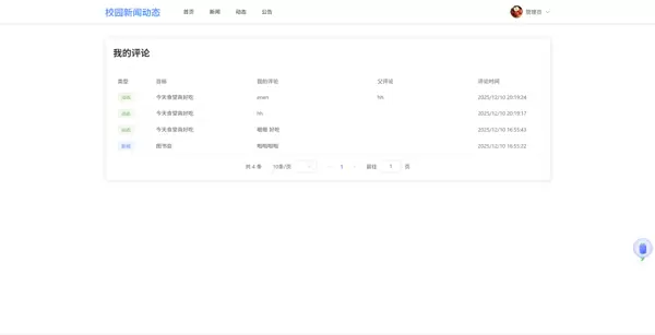 - 可浏览校园动态,并进行互动操作(评论、点赞、收藏)
