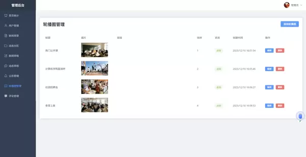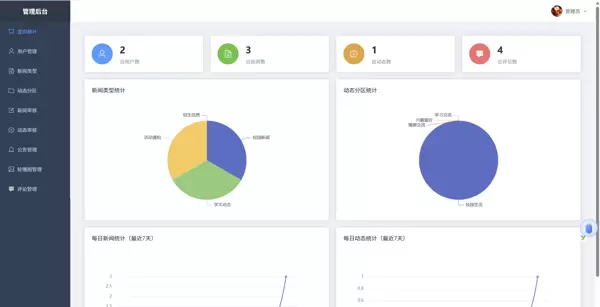 - 首页统计分析:利用 ECharts 图表展示关键数据指标