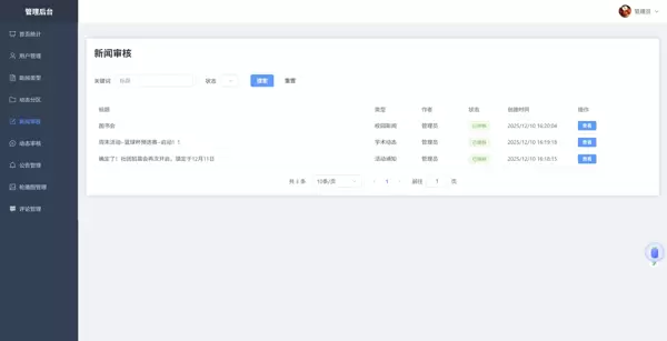 - 额外拥有新闻投稿权限,可提交新闻内容待审核