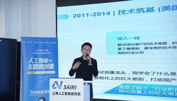 11月28日至30日,2025年广发证券·KAB大学生微创业行动“人工智能+”主题微创营在上海人工智能研究院举行。灵境智源创始人兼CEO孙博作为青年创业典范受邀参与,面向高校学子进行深度分享。