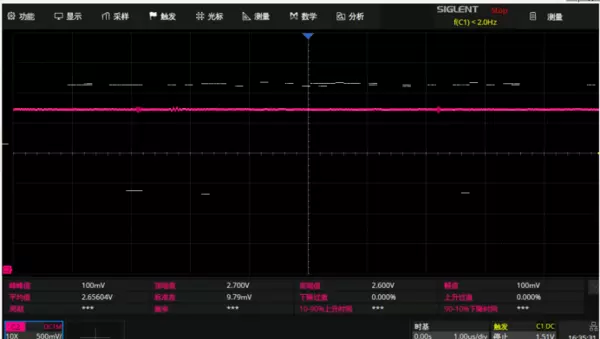 进一步检查FPGA各组电源(包括VCCINT、VCCAUX、VCCO等)是否存在纹波或瞬态跌落,示波器观测未发现异常,电源稳定性良好,故排除此可能性。
