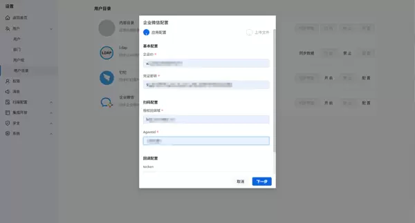 为了实现企业微信用户的同步和登录功能,需先完成企业微信相关参数的配置。