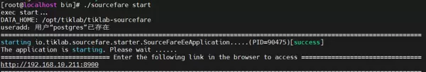 /opt/tiklab-sourcefare/bin,运行以下命令启动服务: