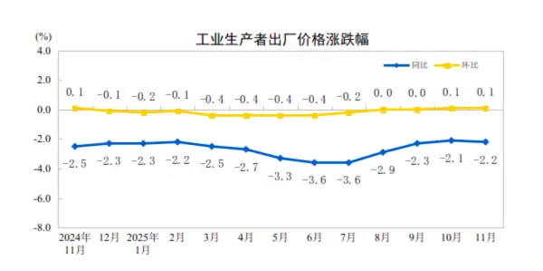 在PPI方面,11月份环比上涨0.1%,实现连续两个月正增长。董莉娟分析指出,本月PPI环比变动主要有两个特征:一是部分国内行业季节性需求上升带动价格上涨;二是输入性因素导致有色金属与石油相关行业价格走势出现分化。
