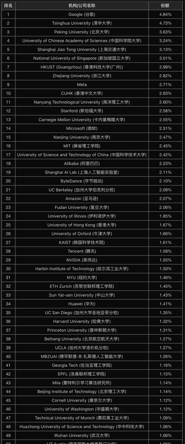 NeurIPS 2025成为全球人工智能发展进程中的一个标志性节点,见证了中国AI从“数量追赶”迈向“底层创新”的历史性转折。清华大学以4.73%的论文接收占比紧追谷歌的4.84%,两者差距仅0.11%,预示着长期由科技巨头主导的学术格局正面临深刻重构。