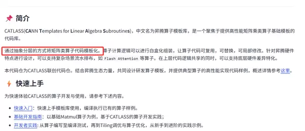在昇腾AI处理器的算子开发中,Catlass的引入标志着一次重要的技术跃迁。它不再要求开发者完全依赖Ascend C从零实现复杂的矩阵运算逻辑,而是提供了一套基于模板元编程的高效算子开发模式。