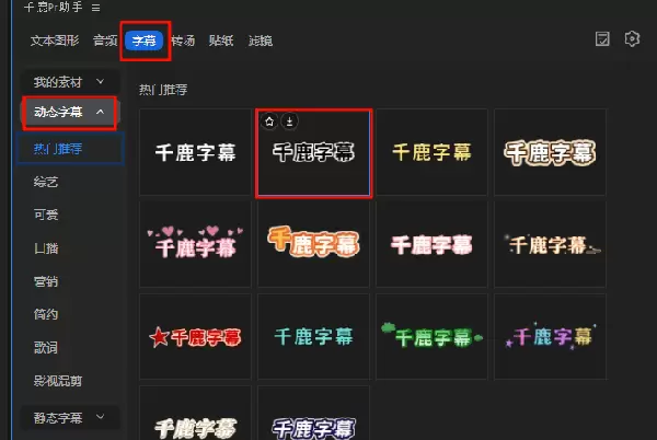 - 进入千鹿Pr助手 → 字幕 → 动态字幕模块