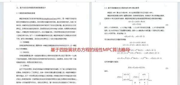 在四旋翼飞行器控制系统中,轨迹跟踪性能是衡量控制器有效性的重要指标。模型预测控制(MPC)凭借其对系统动态特性的显式建模能力以及对输入和状态约束的良好处理机制,成为实现高精度轨迹跟踪的有效方法之一。本文重点围绕基于线性化与非线性动力学模型的MPC控制器设计,开展仿真对比分析,探讨二者在轨迹跟踪表现上的差异。
