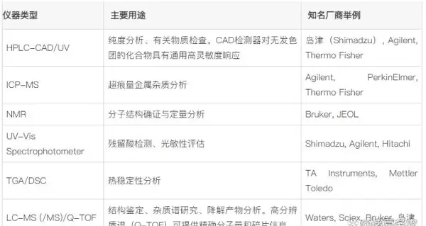 用于六氟砷酸盐类PAG质量检测的核心仪器配置,包括质谱、色谱及其他精密分析设备。