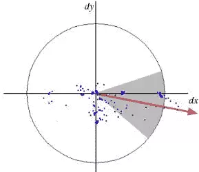 为了确定主方向,SURF对以关键点为中心、半径为6s(s表示关键点的尺度)的圆形区域内执行Haar小波响应分析,并使用高斯函数对响应值加权。随后,通过一个角度跨度为60度的滑动窗口统计总响应,进而估算出主方向。