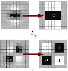 得益于积分图像技术,盒状滤波器可在多尺度空间中高效完成卷积运算。同时,SURF利用Hessian矩阵的行列式来定位关键点及其对应尺度。