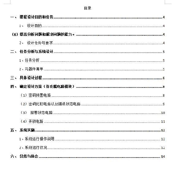 本次课程设计使我深入理解了数字电路的基本设计流程和实现方法。通过对各个集成芯片功能的实际应用,我对74系列逻辑器件的工作原理有了更直观的认识,并熟练掌握了使用Multisim软件进行电路仿真与调试的技术。