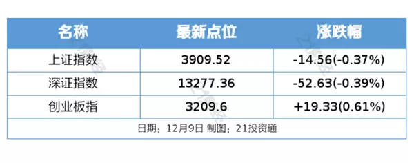 12月9日,A股市场三大指数表现分化。上证指数与深证成指震荡走低,创业板指则呈现冲高回落态势,并在尾盘出现拉升。截至收盘,沪指下跌0.37%,深成指下跌0.39%,而创业板指上涨0.61%。沪深两市合计成交额达1.9万亿元,较前一交易日减少1327亿元,呈现缩量调整格局。