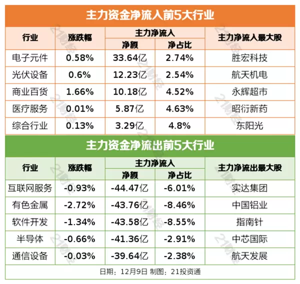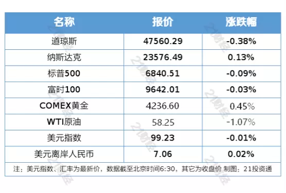 隔夜海外市场同样呈现分化走势。纽约股市三大股指12月9日涨跌互现:道琼斯工业平均指数下跌179.03点,报收于47560.29点,跌幅0.38%;标准普尔500指数微跌6点至6840.51点,跌幅0.09%;纳斯达克综合指数则逆势上扬,上涨30.59点,收于23576.49点,涨幅0.13%。