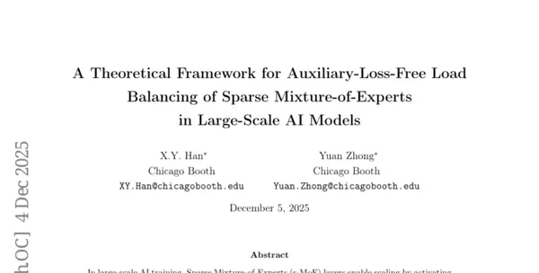 芝加哥大学商学院的研究者X.Y. Han与Yuan Zhong于2025年12月5日联合发表了一项重要研究成果(论文编号arXiv:2512.03915v2),深入探讨了名为“稀疏专家混合模型”(s-MoE)的先进AI架构。该模型如同一个高度智能化的任务调度中心,能够在每一时刻动态选择最合适的若干专家参与当前运算。研究重点聚焦于分析并优化一种由DeepSeek团队提出的“无辅助损失负载均衡”(ALF-LB)算法,并将其成功应用于DeepSeekV3模型之中。