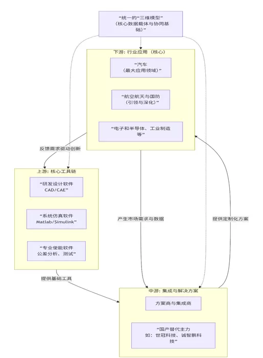 该层级是MBD实施的技术源头,提供必要的软件支撑。目前市场仍由国际企业主导,但国产替代进程正在加快。
