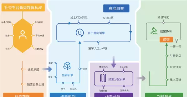 先进平台可处理多种模态数据,包括文本(搜索词、评论)、行为轨迹(点击热力图、访问路径)、语音内容(通话情感分析)以及线下服务记录等。 - 文中提到的AI营销获客四步法是什么?
