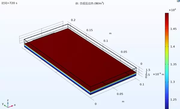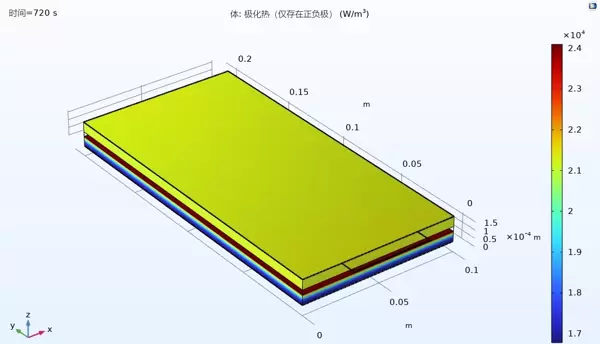 - 欧姆热:需分别考虑电子导电路径(电极材料)和离子导电路径(电解质),并在电解质域中引入电流守恒方程以准确描述电势分布。