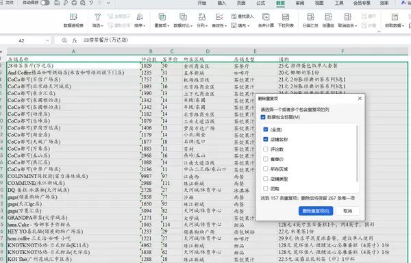 点击“数据”选项卡,选择“删除重复项”功能,系统将自动识别并移除重复的行记录。