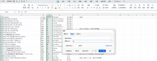 如需将某一特定内容批量更改为另一内容,可使用“查找与替换”功能: