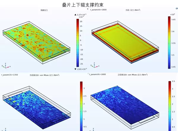 特别值得注意的是集流体区域的应力集中问题。当活性物质层发生剧烈体积变化时,集流体如同受双向拉伸的金属薄膜,在边缘和拐角处易产生极高的局部应力。若仍采用纯弹性本构模型,计算结果往往远超材料理论强度极限。