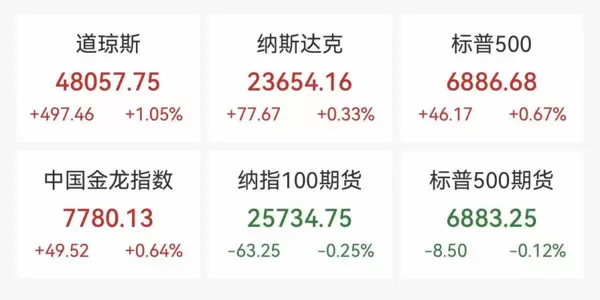 受降息消息影响,美国金融市场整体表现积极,股市与大宗商品价格普遍上扬。根据Wind数据,当地时间12月10日,美股三大指数悉数收高:道琼斯工业平均指数上涨1.05%,标普500指数上涨0.67%,纳斯达克综合指数上涨0.33%。