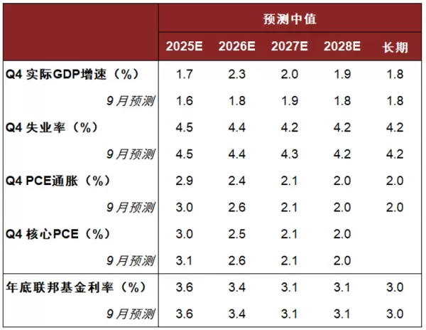 与此同时,美国经济前景预测也出现调整。最新经济预测显示,2026年GDP增速预期由1.7%上调至2.3%,反映出官员们对明年经济反弹有一定期待,部分源于今年第四季度因政府关门造成的暂时性拖累将在一季度得到回补。不过,这种回升是否具有持续性仍有待观察。