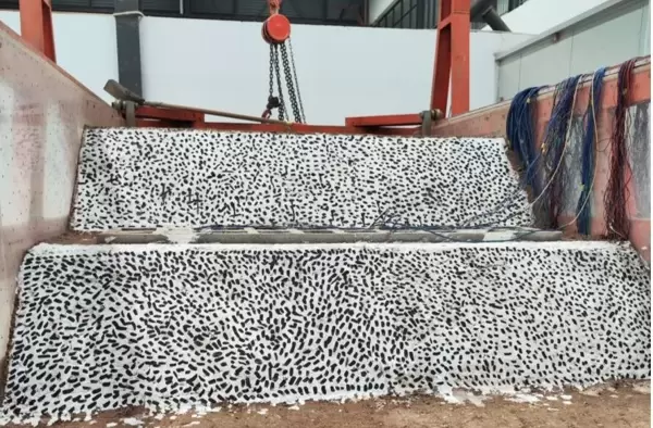 由于模型视场较大,且两侧框架可能遮挡补光,采用毛笔手工点制散斑,合理控制斑点尺寸与分布密度。同时,在中部混凝土锚固结构上粘贴若干标记点,以增强局部纹理特征,确保DIC系统能稳定识别关键区域。